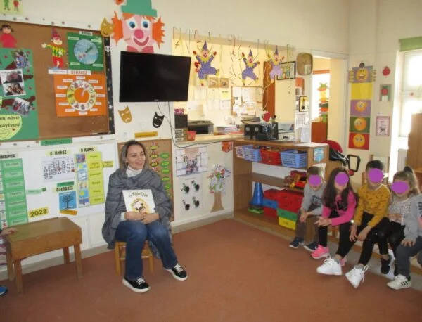 Την επόμενη μέρα η κ. Κυδωνάκη επισκέφθηκε το σχολείο αυτή την φορά απευθυνόμενη στα παιδιά, με την ανάγνωση και την συζήτηση του παραμυθιού «Το Τζάτζαλο» . Η ιστορία διαπραγματεύεται την αποδοχή της δύσκολης πλευράς του εαυτού μας.