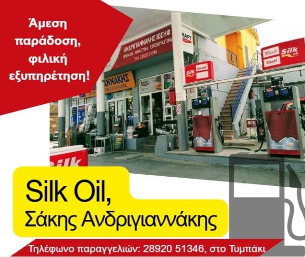 Silk Oil, Σάκης Ανδριγιαννάκης στο Τυμπάκι Το πετρέλαιο θέρμανσης αποτελεί βασική υπηρεσία του πρατηρίου Silk Oil, με πολυετή εμπειρία και … Περισσότερα