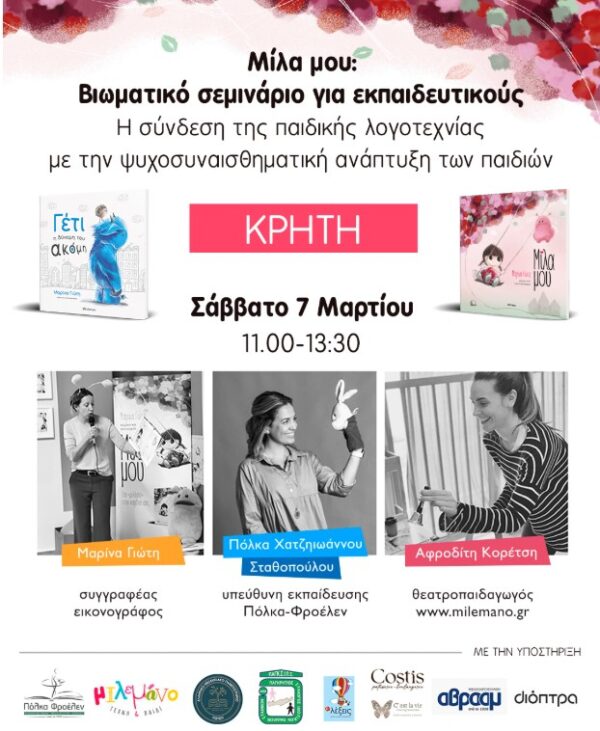 Ένα βιωματικό σεμινάριο με τίτλο «Πώς να χτίσουμε γέφυρες επικοινωνίας με τα παιδιά στο νηπιαγωγείο και στο δημοτικό» θα πραγματοποιηθεί το Σάββατο 7 Μαρτίου 2026, στο Αμφιθέατρο του Αθλητικού Κέντρου «Μάρκος Καραναστάσης», στις εγκαταστάσεις του Ελληνικού Μεσογειακού Πανεπιστημίου.