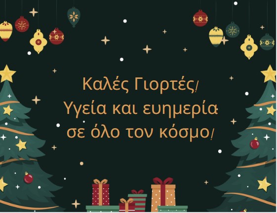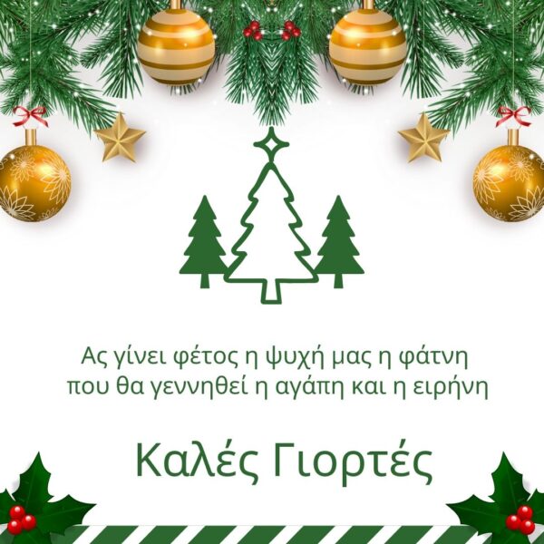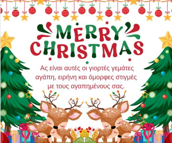 Οι φετινές γιορτές να γεμίσουν την καρδιά σας με χαρά, αγάπη και ελπίδα. Καλά Χριστούγεννα και Ευτυχισμένο το Νέο Έτος! … Περισσότερα