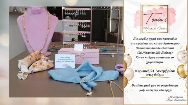 Στις 21 Δεκεμβρίου τα εγκαίνια του καταστήματος Tonia’s Handmade Creations Ένας νέος χώρος αφιερωμένος στο χειροποίητο κόσμημα και τα αξεσουάρ, … Περισσότερα