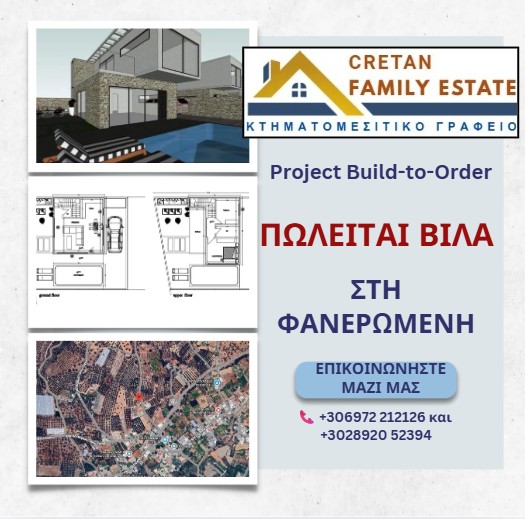 ΠΡΟΣ ΠΩΛΗΣΗ: Build-to-Order Βίλα στη Φανερωμένη Στη Φανερωμένη Δήμου Φαιστού, με ανεμπόδιστη θέα σε βουνό και θάλασσα, προσφέρεται προς πώληση … Περισσότερα