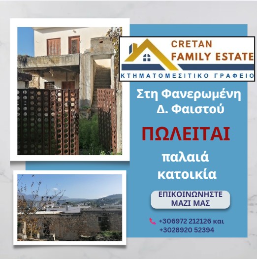 Πωλείται παλαιά οικία στη Φανερωμένη Δήμου Φαιστού Διατίθεται προς πώληση παλαιά διώροφη κατοικία, ιδανική για αναπαλαίωση, στη Φανερωμένη του Δήμου … Περισσότερα