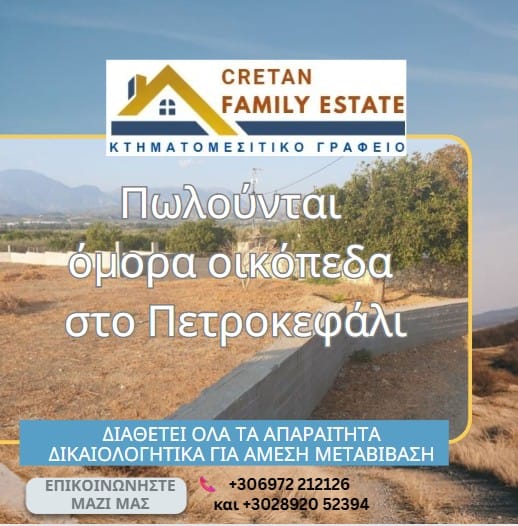 Πωλούνται 2 όμορα οικόπεδα στο Πετροκεφάλι Δ. Φαιστού
