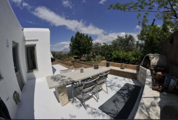 -Αυλή με πέτρινο τραπέζι, BBQ και ξυλόφουρνο