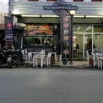 -Ένα beach bar με κύματα στο φόντο και χαλαρή μουσική.