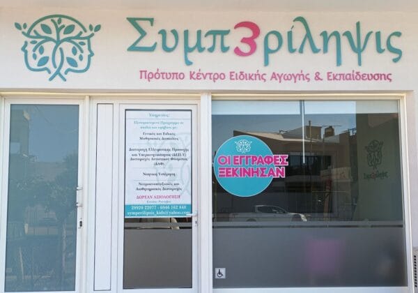 Το Πρότυπο Κέντρο Ειδικής Αγωγής και Εκπαίδευσης «Συμπ3ρίληψις», ανοίγει την αγκαλιά του με αγάπη και σας υποδέχεται με ιδιαίτερη χαρά, σε ένα νέο, ζεστό και ειδικά διαμορφωμένο εκπαιδευτικό χώρο για μικρούς και μεγάλους, προσφέροντας εξατομικευμένες υπηρεσίες Ειδικής Διαπαιδαγώγησης και ένα γλυκό καλωσόρισμα σε κάθε παιδί!