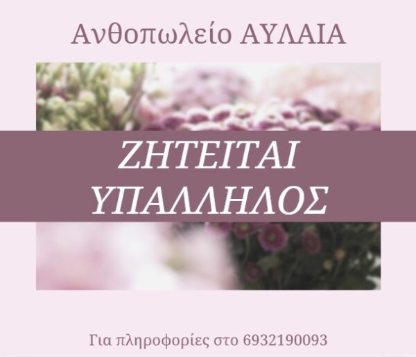 Ζητείται υπάλληλος για το ανθοπωλείο “Αυλαία”, στο Τυμπάκι